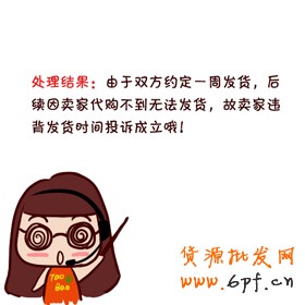 ?。ㄈ绻赇伔偶?,在節假日內必須每個寶貝都注明發貨時間,非節假日,建議下架),若只在店鋪公告,主圖,簽名等注明,違背發貨時間承諾成立。賣家未按照淘寶規定的72小時發貨或者是未按照與買家約定的發貨時間發貨而被投訴的,商家可以在小二未處理前做好賠付(交易金額的5%,不超過30元)或者和買家協商撤銷,避免違規扣分。