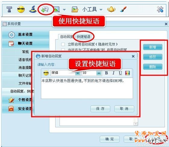 還有,充分利用旺旺快捷短語、自動回復,畢竟縮短顧客的等待時間就如同增加成交的幾率,不是嗎?
