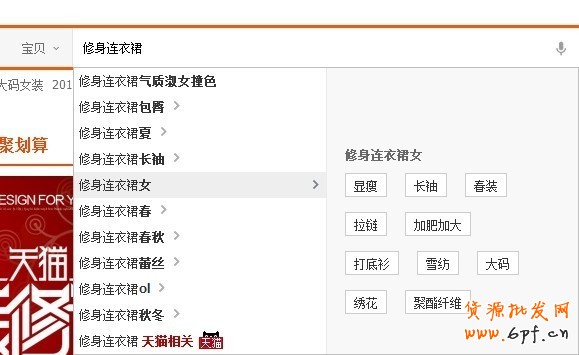 比如你留下來的有修身連衣裙,這個時候你就去淘寶搜索修身連衣裙,把他的下拉框和相關搜索詞都復制出來放入到一個記事本的文檔中。對于標題優化來說,這些詞是絕對絕對夠用了的。
