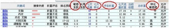 例如對于一款大碼文胸,大碼、大胸是轉化敏感度高的,而文胸、內衣是轉化敏感度偏中等的。雖然量子數據能看出哪些關鍵詞帶來了轉化,但有許多偶然轉化的原因非常復雜,不一定與寶貝相關(有些轉化詞甚至是完全無關的),而許多未有轉化數據或者未有流量的關鍵詞卻很有高轉化潛力。因此轉化敏感度不能通過量子數據判斷,必須人工評估。