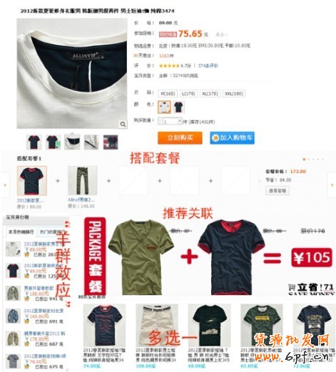 我們可以將這種關聯營銷思路、方法應用到同類型的寶貝上(實際定價需按照產品本身的而定),提高客單價,讓一個流量創造更多利潤。