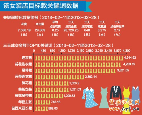 同時該數據表明,直通車已逐漸出現好轉。所以“預熱”環節很且要。在淘寶做服裝,特別是夏、冬兩季,商家至少要提前一段時間開始產品預熱。因為彼時市場競爭力度較小,關鍵詞質量得分競爭壓力都比季節來臨時小;可以讓商家盡早地洞悉市場規律,利用數據反饋分析選款是否得當;此外,商家還會有充足時間做款式測試,就算選錯款式。也有足夠的時間來更換主推寶貝。