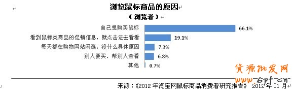 從上面圖1可知,66.1%的消費者來淘寶網瀏覽鼠標商品主要是因為“自己想購買鼠標”才進行的主動瀏覽,目的性非常明確。