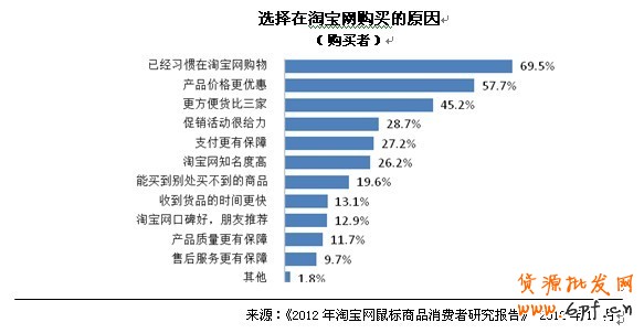 從上面圖5可知,消費者選擇來淘寶網購買鼠標商品,有69.5%主要是因為“已經習慣在淘寶購物”,其次才是“商品價格更優惠”以及“更方便貨比三家”。