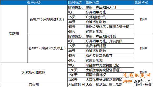 對于不同類型的客戶,采用的營銷策略及投入的資源也有所區別。相比沉默期和睡眠期的客戶,活躍期的客戶推送的節奏會較頻繁,以便快速增強店鋪及品牌印象,促進客戶再次購買。而針對沉默期和睡眠期的客戶,營銷的力度要大,做得“狠”才能有效挽回客戶。在郵件內容的選擇及制作上,也充分考慮了新老客群的特點。新客戶郵件以提高店鋪信任度,展示會員優勢為目的,而老客戶郵件以增強情感聯系、感恩優惠為特點。