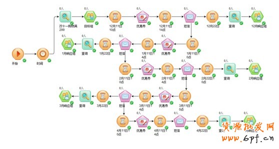 【女裝類目刺激案例】對于11.11當天購物滿299的新客戶,每隔一個月發感謝短信和優惠卷,沒有回來的客戶事隔一個月再次刺激的流程,循環五次的流程。在其中每次發出優惠卷10天之后,我們做一次評估。