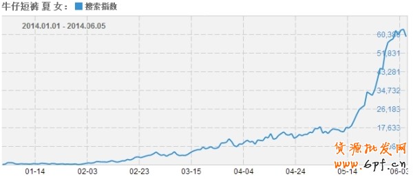 如果大家還沒什么概念,那我們來看看這款寶貝因此會損失多少免費流量。要知道“牛仔短褲 夏 女”可是牛仔短褲關聯的下拉框熱詞,下圖是從淘寶指數里查到的數據,搜索指數現在已達到每天6萬多,而且還呈上漲趨勢。