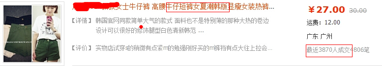 先來看下這款寶貝,標題如下(注意紅框標出的部分),30天3870人付款,其中2559人收貨。