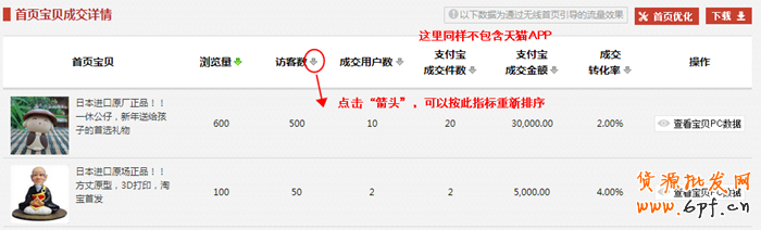 在“整體概覽”的下方,為“無線店鋪首頁”的寶貝成交詳情。