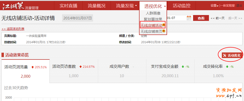 無線店鋪活動(效果及優化)——查看無線店鋪活動的流量、轉化及具體成交的寶貝效果;