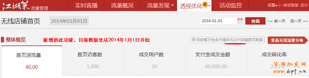 注意:此為新增功能,目前只支持查看2014年1月1日以來的數據;這里的無線店鋪首頁目前包含“淘寶客戶端”及“手機淘寶/天貓WAP版”,暫不包含天貓客戶端中的無線店鋪頁面。