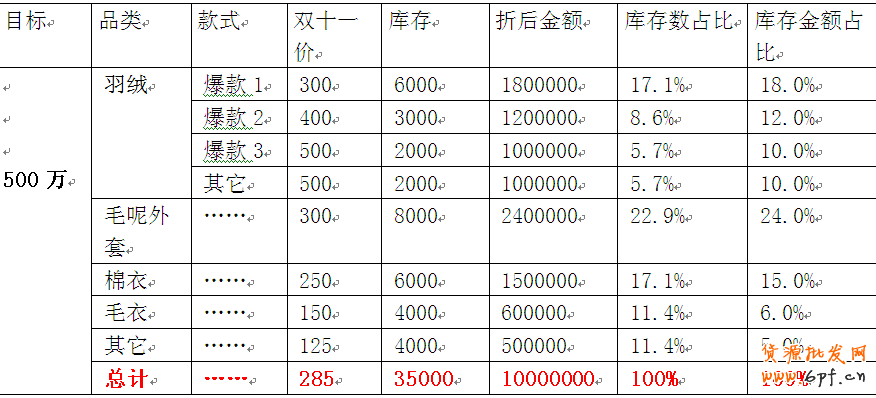 一般按照女裝的售罄率約40%核算,最低銷售額800萬,那么需要備貨2000萬。如果件單價100元,那么需要備貨20萬件。