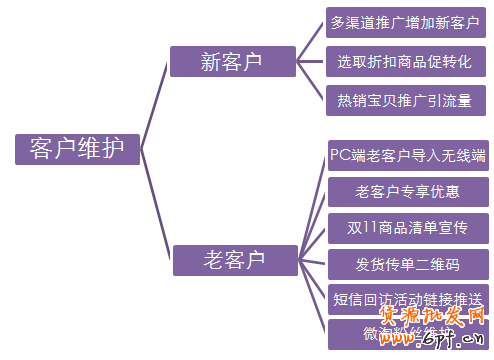 不管是面對雙11這種一年一度的大促,還是在無線端的發展,客戶做好維護首當其沖,做得好的,可能是你無線流量的第一桶金,引導的不好,可能會失去一大批原有基礎的客戶群。想必這個大家都非常明白老客戶帶來的利益。而在雙十一規劃前,對于客戶維護,新老客戶同時維護,上表已經給出了針對新老客戶的不同推廣方法,大家可以借鑒。
