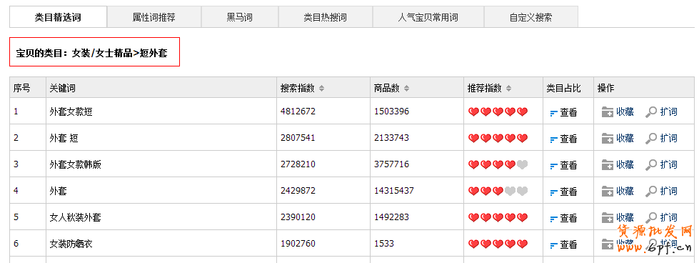 關鍵詞的商品數、搜索指數、推薦指數、關鍵詞類目占比,讓你選擇關鍵詞隨心所欲,不在為好壞而糾結了。
