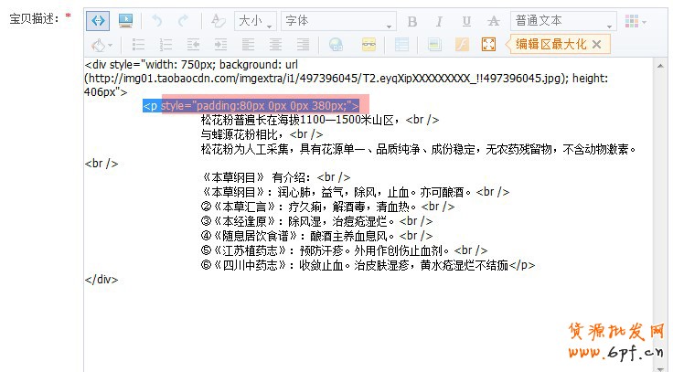 最后:保存已經編輯好的寶貝。如有其它需要做圖文混排的地方,以上步驟。