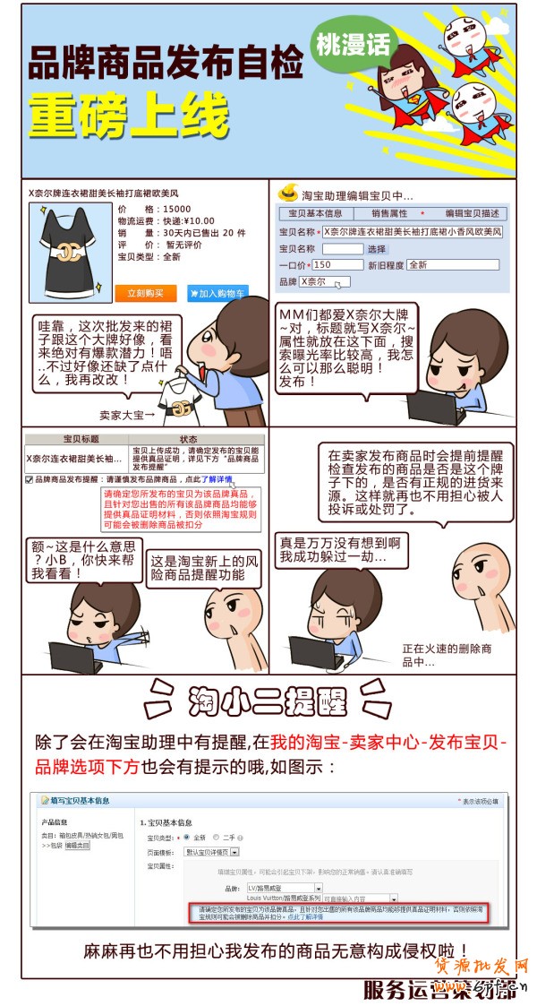 為了盡可能的避免賣家因不了解規則而導致的處罰,降低假貨處罰對無意售假賣家帶來的影響,淘寶將給予賣家更多市場管理的信息,充分給予賣家自我糾正的機會,盡量減少不必要的處罰。自2014年3月19日起,我們將隆重上線品牌商品提醒功能。