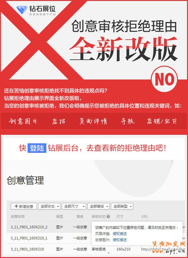 本文來源: 鉆展創意審核新版拒絕理由上線