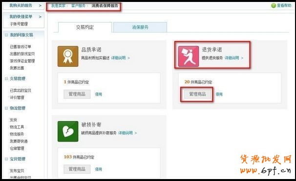 2、 賣家可自主選擇是否再次參加退貨承諾,可進入“我是賣家-客戶服務-消費者保障服務”進行設置。