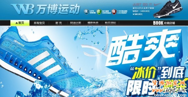 這是一個賣耐克品牌鞋的首頁圖片,整個就像是賣床上用品的,這樣的裝修風格會給店鋪跳轉率大打折扣的。