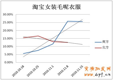 購買的地域差異:買家購買淘寶女裝品類存在著地域性的差異,而且品類在不同地域的銷售周期也存在很大的差異。地域性的差距不僅體現在品類啟動銷售時間點和銷售周期,也體現在不同地域的買家對各品類的偏好,如沿海地區、西南地區、南部地區,連衣裙一直是買家們的寵兒,但在北方相對來說要弱些,且在款式上也會比較大的差異。