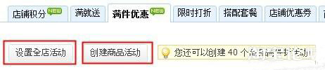6、如果要針對全店商品或部分商品按”件“數的緯度設置促銷活動,可以選擇”滿件優惠“進行活動創建。