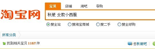我用淘寶搜索一件秋裝女裝小西服如圖: