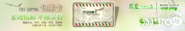 我的店鋪采取了一種非常有效的老客戶群體維護的手段——店鋪終身免郵卡 (見下圖)
