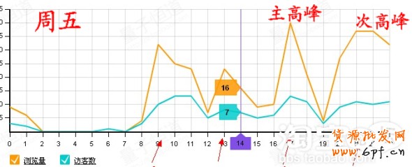 從圖中展現的情況來看,工作日的主高峰時段主要集中在中午12點-13點半的區間,而休息日則有所不同,可能變成晚上20點-21點的區間。每個店的產品不同,針對的客戶群體不同,購物的習慣時間可能也會有所差異,大家可以按照這個方法,找出自己店鋪每天的主高峰和次高峰時段,然后將寶貝的上架時間,集中設定到主高峰和次高峰時間之后1-2小時的時間點上。