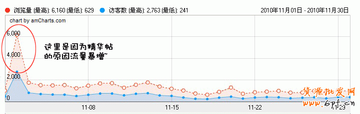 80后的小賣家,開店還不足三個月。最初開店的時候,和所有新人賣家一樣茫然不知所措,朵朵憑借自己的努力,漸漸的小店開始有了起色,訂單漸漸越來越多?,F在朵朵把摸索出的一套自己的打理店鋪的小小經驗寫出來,希望能夠稍微幫助到新手賣家起步,因為朵朵知道剛剛起步的時候實在是太難太難了。尤其朵朵身體不好,身患IGA三級,現在每天還靠吃激素進行治療,旺旺只能經常掛機,所以很多咨詢過來的親都無法回復,這絕對絕對不是有意怠慢,還請各位親體諒朵朵。下面還是進入正題,首先小秀一下11月份也就是開店第二個月的流量,這都是朵朵努力的結果。(11月2日那天流量暴增至6000多是因為精華帖的緣故)