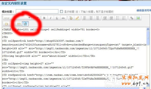 一切完成后,再次點擊代碼。將文本框里面的代碼復制,打開我的淘寶“店鋪裝修”找到公告欄所在版面,點擊如下圖所示的源代碼。然后依次點擊發表、預覽、公布,就可以在淘寶店鋪首頁看到目前店鋪里面正在做的商品促銷活動,增加顧客在店里面的駐足時間,借此帶動寶貝瀏覽率和銷量。
