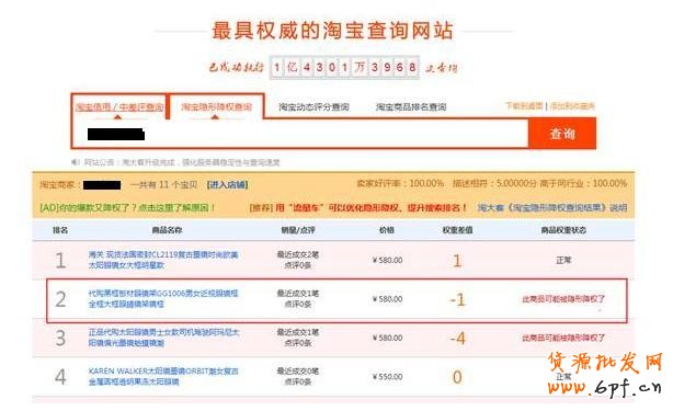 3隱形降權查詢平臺其實涉及到了商業利益,一些查詢網站希望通過制造淘寶存在隱形降權,讓賣家產生恐慌,來去其網站搜索,