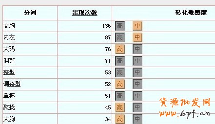 例如對于一款大碼文胸,大碼丶大胸是轉化敏感度高的,而文胸丶內衣是轉化敏感度中的。