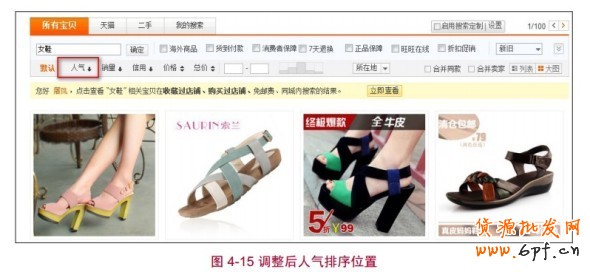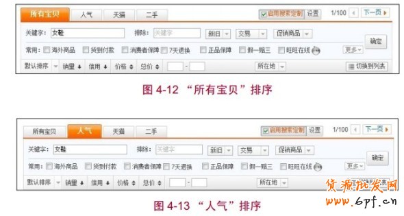 2012年7月26日,淘寶搜索“人氣排序”位置進行了以下調整,如圖4-14、圖4-15所示。