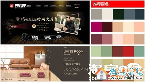棕色和金色黑色搭配,會有高貴、經典的沉淀感。這種配色方法,我們經??梢栽诟鞣N奢侈品站點和VIP平臺上看到;棕色和白色會讓人感覺更沉穩莊重一些,產生相對舒適柔軟的感覺;而淡棕色和黃色、橙色搭配,會有比較生活化,也會有高端大牌的感覺。后面這兩種配色方式,適用于做家紡、家居搭配的賣家。
