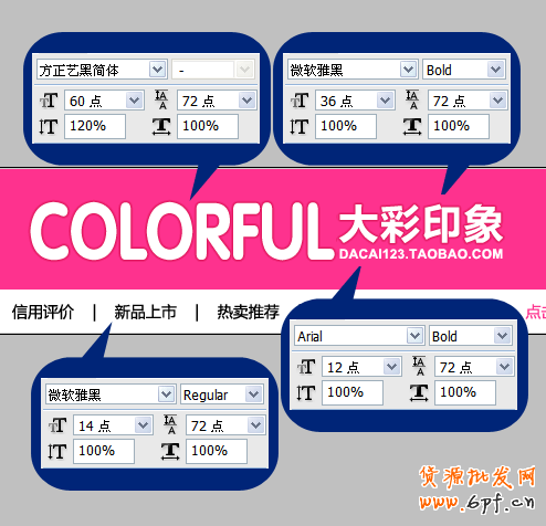 使用工具分別輸入文字,四個文字區域的設置分別如下圖