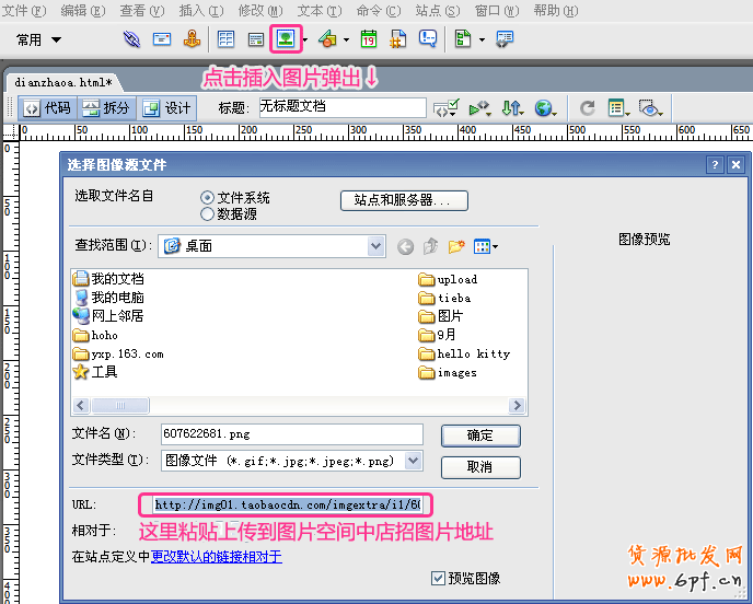 DW是所見即所得網頁編輯軟件,現在大部分賣家朋友使用的都是這個,很方便!首先將剛才制作好的圖片上傳到您的圖片空間,復制這個圖片的鏈接地址! 打開DW軟件,新建一個HTML文檔,插入圖片