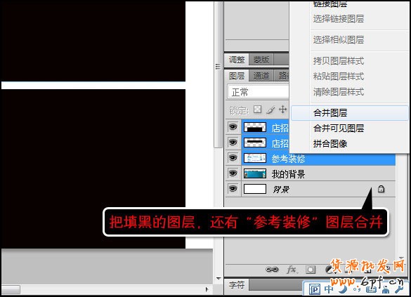 把做成純色的店招和參考圖層合并,目的是通過改變這個圖層的不透明度,輕松看到我們的店招,以及店招下的輪番等應該做在什么位置,而無需過多度量。