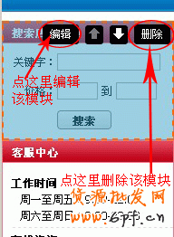 這樣就可對相應的模塊進行編輯或刪除操作了。首頁右邊的模塊操作相類似,在這里就不多說了。