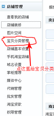 接下來我重點要說的是左側的導航欄了,清晰的分類可以讓買家更快地找到她們想要的寶貝,所以先要合理分類,不然買家到了店鋪里也找不到她們要的東東哦!在“我是賣家”頁面左側導航欄中找到“寶貝分類管理”,如圖: