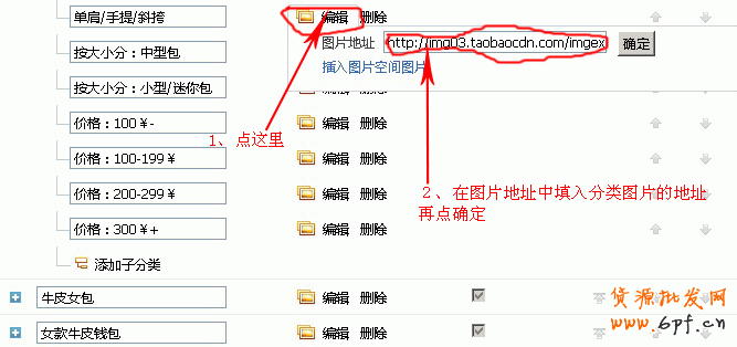 復制好圖片地址后,再回到“寶貝分類管理”,給分類添加圖片鏈接,如圖: