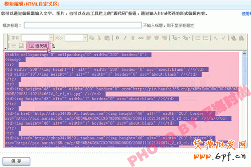 7.進入旺鋪后臺,在左側添加自定義模塊【圖11】,到左側最下面找到新添加的模塊,點擊齒輪圖標進行編輯,切換到源碼模式,黏貼上一步中復制好的代碼【圖12】。取消源碼模式,你就會看到效果了,最后保存。
