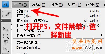 然后我們就要馬上動手了,打開PS,選擇文件,單擊新建