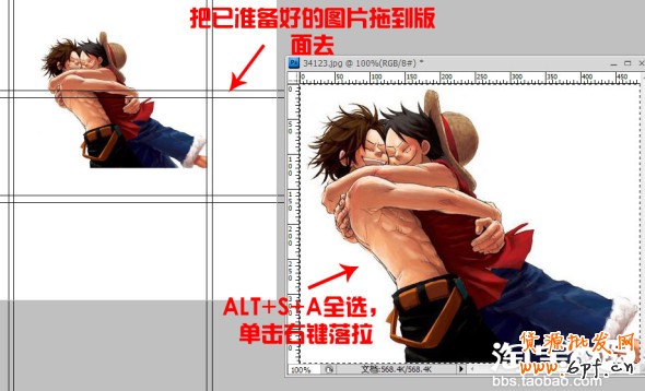 然后打開已準備的圖片.ALT+S+A全選,單擊左鍵,直接拖到版面去