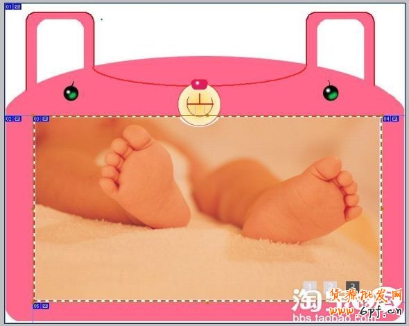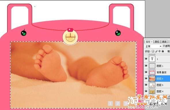 同樣利用移動工具將寶貝圖片拉進邊框圖層來,會看到下面的情況