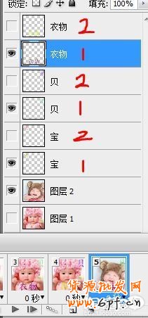 7.選中幀1,在圖層面板上選擇這個幀需要顯示的內容