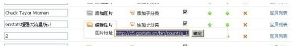 2.新添加一個分類,命名為“流量統計”,然后在圖片地址中填入剛剛的那個圖片鏈接,例如http://c5.gostats.cn/bin/count/a_1009135/t_3/i_4/counter.png(此處填入你的Gostats中html代碼相應的圖片鏈接,這個鏈接只是為了給大家演示使用,每個人的都是不一樣的)