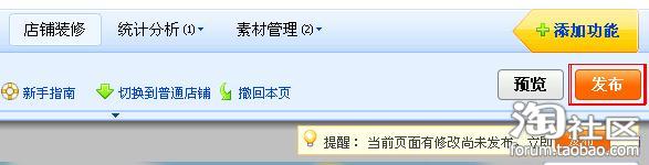 、最后,在裝修頁面編輯區中點擊“發布”按鈕,并在出現對話框中點擊“確認”,就可以讓我們制作的促銷區展現在各位買家朋友的面前了。