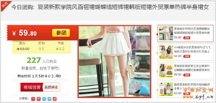 這個團購活動是限時的,模塊中的計時,一點一點在減少,這樣刺激買家盡快下單哦!點擊”參團“進去后:原價、折后價共同展示,刺激買家購買,如下圖。