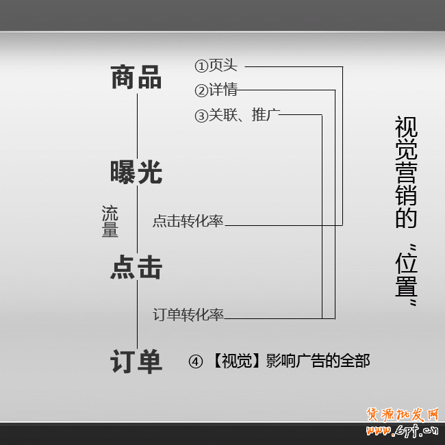 那么跟進今天的主題,視覺營銷的主要功能是提高轉化率,那么都出現在哪些環節中呢?