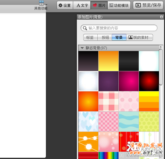 我們想要的模板其它的圖片或者框架、背景等都在里面,都可以再右邊點擊圖片里面選擇的。點擊想要的或者點擊后不適合做的我寶貝描述的都可以刪除或者運用這些DIY廣告牌里有的背景的圖片的。